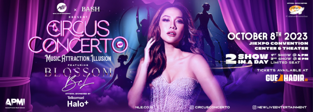 LewatLensa.com – New Live Entertainment x BASH Music Company dengan bangga mengumumkan acara terbaru, Pertama kali di Indonesia, hasil karya anak bangsa dengan konsep acara yang original yang pasti akan memukau para pecinta musik dan penggemar atraksi yang menantang! “Circus Concerto” adalah acara konser musik yang akan menampilkan tiga segmen pilar acara yaitu: Music, Attraction, Illusion dalam satu acara sekaligus, hadir bersama dengan bintang ternama Bunga Citra Lestari (BCL). New Live Entertainment mempersembahkan Circus Concerto featuring Blossom BCL, didukung oleh the official sponsor: Telkomsel Halo+. Sebuah konser yang tak hanya menampilkan musik berkualitas tinggi, tetapi juga atraksi panggung yang memukau dengan ilusi yang spektakuler dalam satu panggung yang megah, Minggu 8 Oktober 2023 di JIEXPO Convention Centre & Theater dengan 2 jadwal show, Sore pukul 16.00 WIB dan Malam pukul 20.00 WIB.