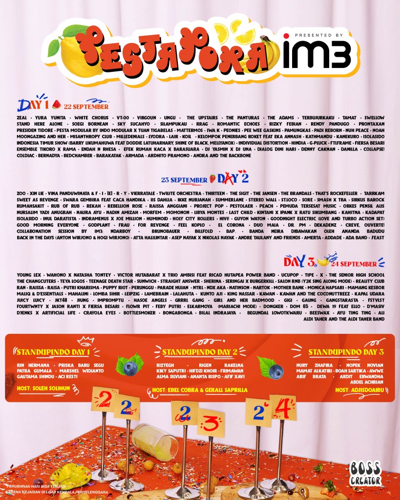 LewatLensa.com – Boss Creator akan segera menghadirkan PESTAPORA 2023, perayaan musik yang siap dinikmati untuk semua kalangan selama tiga hari berturut-turut pada tanggal 22, 23 dan 24 September 2023 mendatang di Gambir EXPO dan Hall D2 Jiexpo Kemayoran, Jakarta.