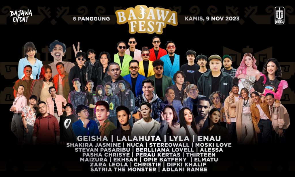 Siap menyajikan deretan musisi bertalenta yang sudah tidak asing di telinga pecinta musik tanah Air, Bajawa Fest akan menghadirkan artis-artis baik dari dalam maupun luar keluarga Musica Studio’s. Seluruh penampil akan tersebar dan siap menyuguhkan penampilan spesial untuk menghibur semua penonton yang hadir di 6 outlet Kopi Bajawa Flores, diantaranya Geisha, Zara Leola, Stereowall, Lyla, Shakira Jasmine, Nuca, Lalahuta, Stevan Pasaribu, Pasha Chrisye, Ekhsan, Berlliana Lovell, Elmatu, Opie Batfeny, Difki Khalif, Satria The Monster, Perau Kertas, Thirteen, Enau, Adlani Rambe, Christie, Maizura, Alessa, serta Moski Love. Festival ini sengaja dirancang untuk melayani beragam selera penonton serta menyatukan pecinta musik dari semua lapisan masyarakat.