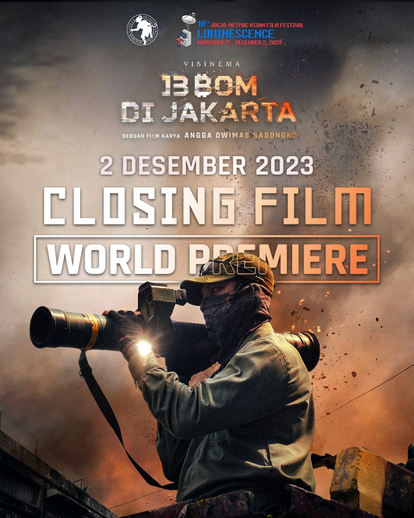 LewatLensa.com – Film action Indonesia terbesar tahun ini persembahan Visinema Pictures dari sutradara Angga Dwimas Sasongko, “13 Bom di Jakarta” menjadi film penutup dalam gelaran festival internasional Jogja-NETPAC Asian Film Festival (JAFF) ke-18 di Yogyakarta, pada 2 Desember 2023. Film “13 Bom di Jakarta” baru akan tayang di bioskop secara serentak pada 28 Desember 2023.