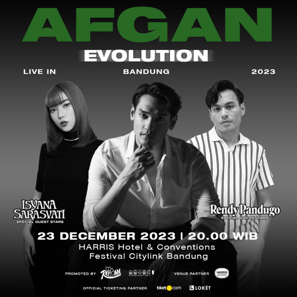 LewatLensa.com – Rayyan Production bersama After Seven Promotion Siap menggelar konser “AFGAN EVOLUTION LIVE in BANDUNG 2023” Besok, Sabtu, 23 Desember, menghadirkan 2 Special Guest Stars: Isyana Sarasvati & Rendy Pandugo di Harris Hotel & Conventions Festival Citylink Bandung.