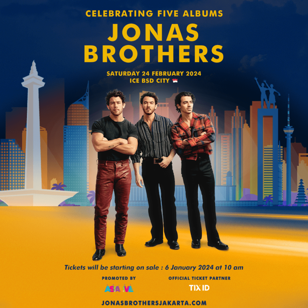 Penjualan tiket resmi tersedia mulai Sabtu 6 Januari 2024 Hanya melalui www.jonasbrothersjakarta.com pukul 10.00 WIB