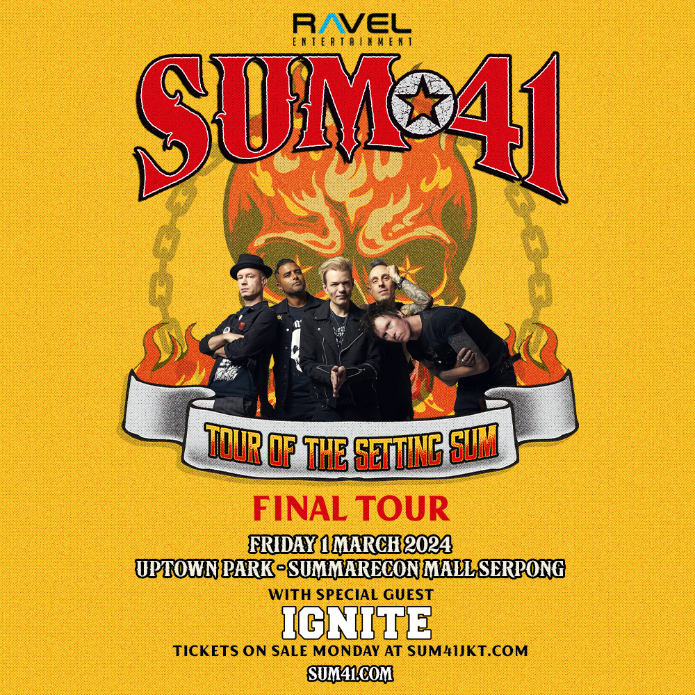 “Konser ini akan menjadi konser yang penuh kenangan manis bagi para Skumfuks di Indonesia karena ini adalah bagian dari tur perpisahan global Sum 41 dan juga menjadi terakhir kalinya bagi Deryck Whibley dan kawan-kawan menyapa penggemar di Indonesia sebelum mereka bubar. Ujar Talenta Regina Kaban selaku Creative Director dari Ravel Entertainment. “Selain itu juga bakalan ada IGNITE band punk hardcore asal California yang akan menjadi band pembuka dari penampilan SUM 41, lanjut Talenta.