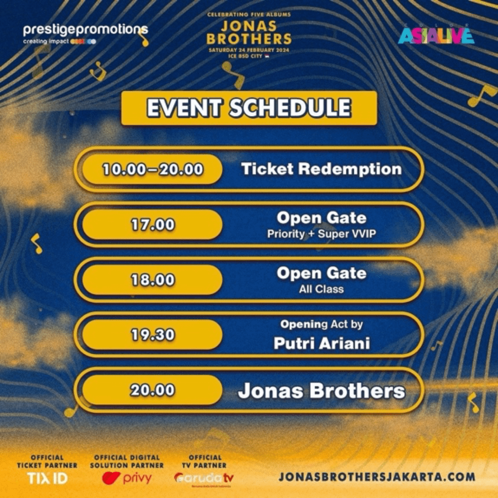Informasi acara konser Jonas Brothers The Tour Live 2024 di Indonesia :
