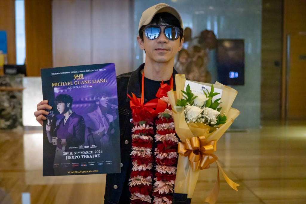 Michael Guang Liang yang sesaat tiba di Jakarta langsung disambut dengan kalungan bunga khas Indonesia, tampak sangat ceria. “Sudah lama saya tidak ke Jakarta. Saya sangat menantikan momen ini. Semoga para fans dapat menyukai musik-musik saya. Karena ini kesempatan bagus untuk menghabiskan waktu bersama mereka (fans-red),” ucap Michael Guang Liang, semangat.
