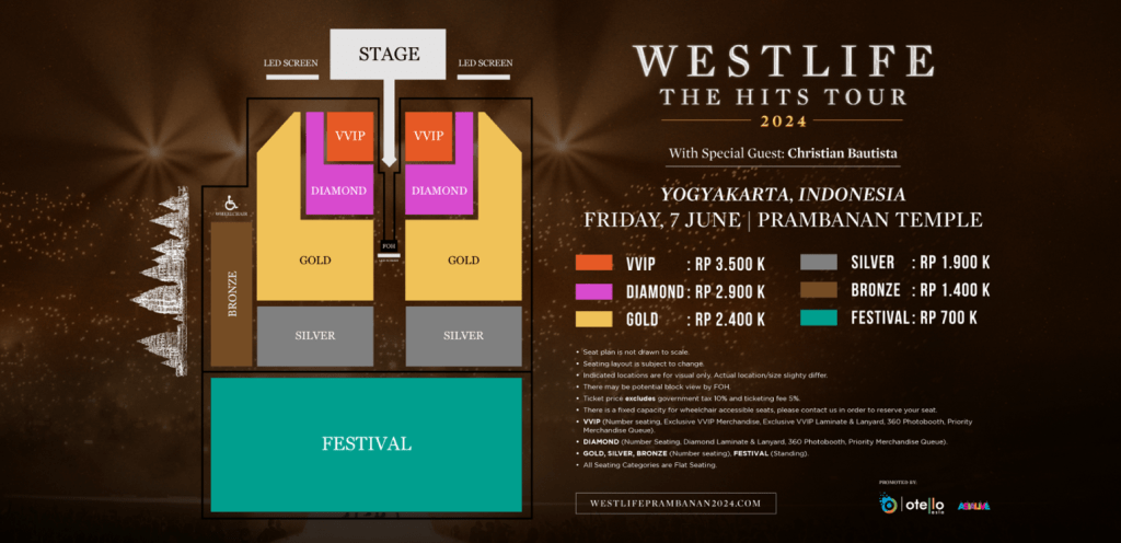 Tiket resmi masih tersedia dapatkan tiketnya sekarang juga secara online hanya melalui www.WestlifePrambanan2024.com