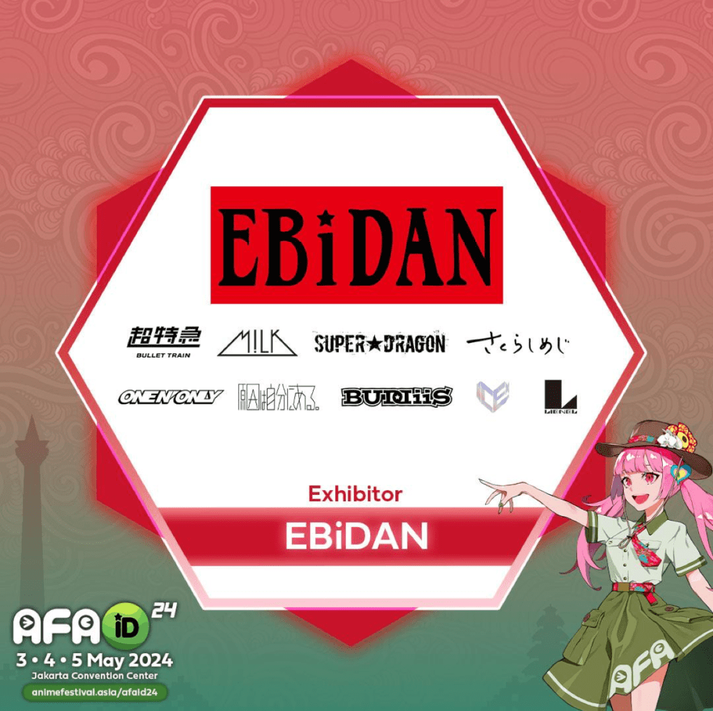 EBiDAN bergabung dengan kami sebagai Peserta Pameran! EBiDAN, sebuah kolektif artis yang beranggotakan banyak boy group populer Jepang seperti BULLET TRAIN, M!LK, SUPER★DRAGON, ONE N ‘ONLY dan masih banyak lagi! Ini akan menjadi kali pertama EBiDAN menjadi tuan rumah stan di konvensi luar negeri. Kolektif ini mendapatkan momentum di Jepang saat ini dan bersemangat untuk melebarkan sayap mereka ke seluruh Asia.