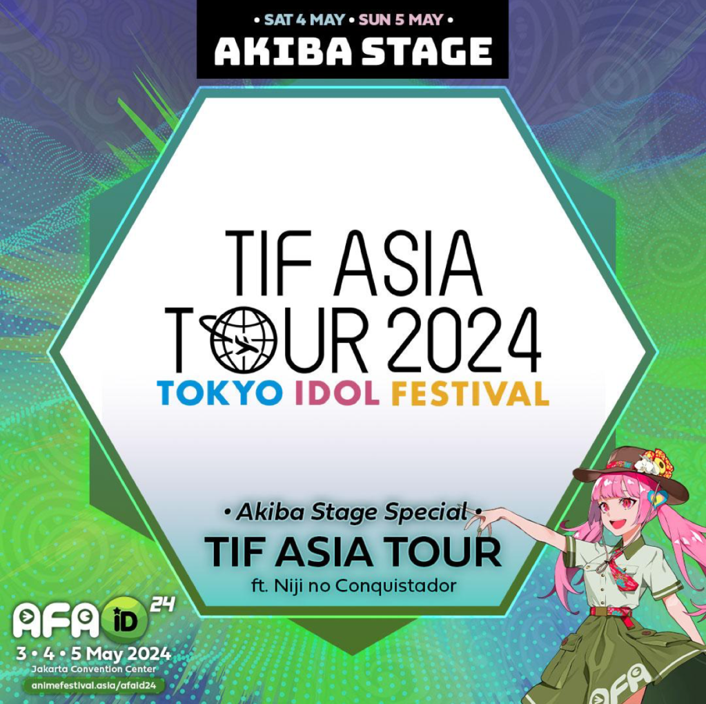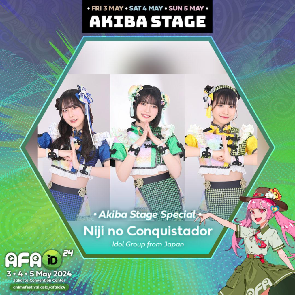 Di Akiba Stage, jangan lewatkan acara Pokemon Stage bersama Niji no Conquistador & JKT48! Kolaborasi spesial antara Pokemon, Niji no Conquistador, dan JKT48 akan berlangsung di Akiba Stage di AFA Indonesia 2024! Dua grup idola papan atas ini akan berbagi daya tarik Pokemon dan kartu Pokemon melalui talkshow eksklusif dan pojok permainan yang menarik.