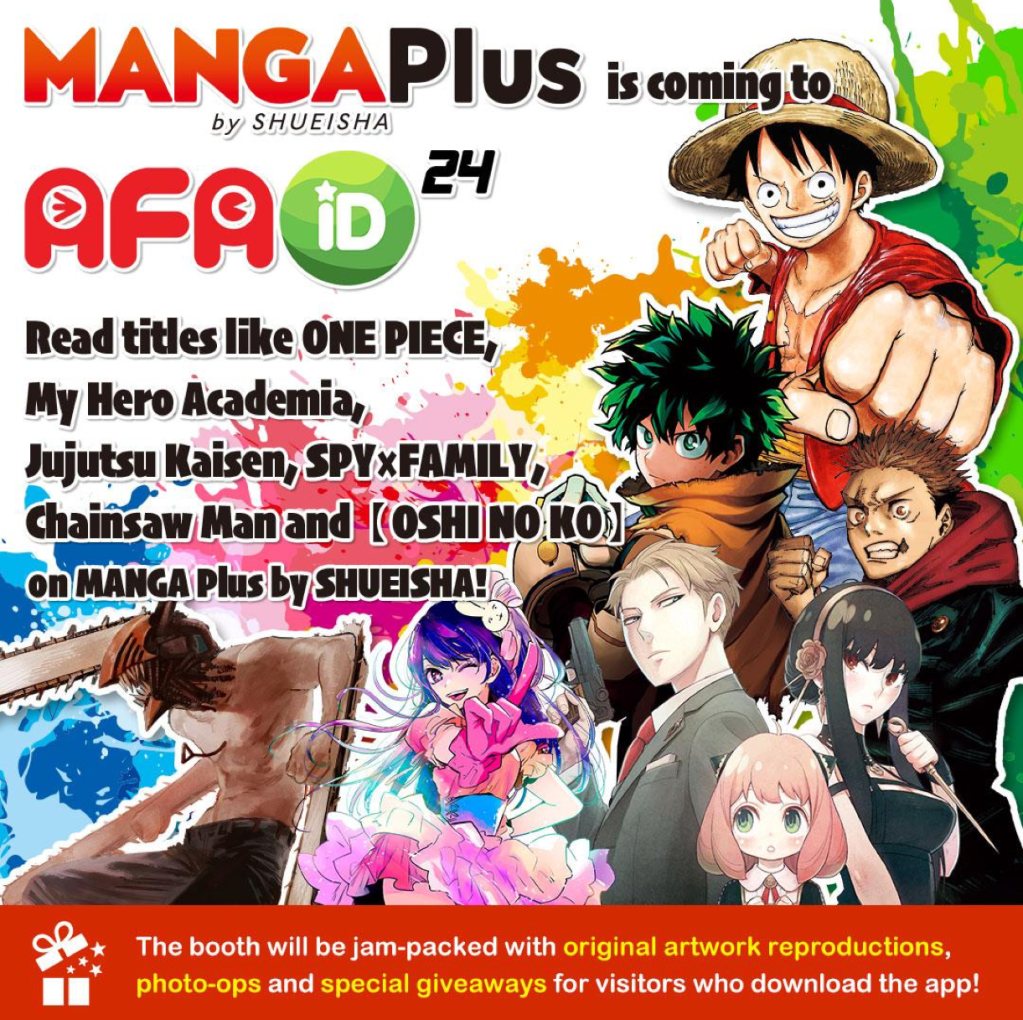 Manga Plus bergabung dengan kami sebagai Peserta Pameran! SHUEISHA terkenal karena menerbitkan “Weekly Shonen Jump”, salah satu majalah manga terbaik di dunia. Judul-judul manga terbaik mereka juga didistribusikan melalui aplikasi mereka di seluruh dunia, MANGA Plus by SHUEISHA! Kunjungi gerai mereka untuk melihat reproduksi seni yang menakjubkan, foto-foto untuk memeriahkan acara sosial Anda, atau bahkan memenangkan hadiah spesial dengan mengikuti acara giveaway!