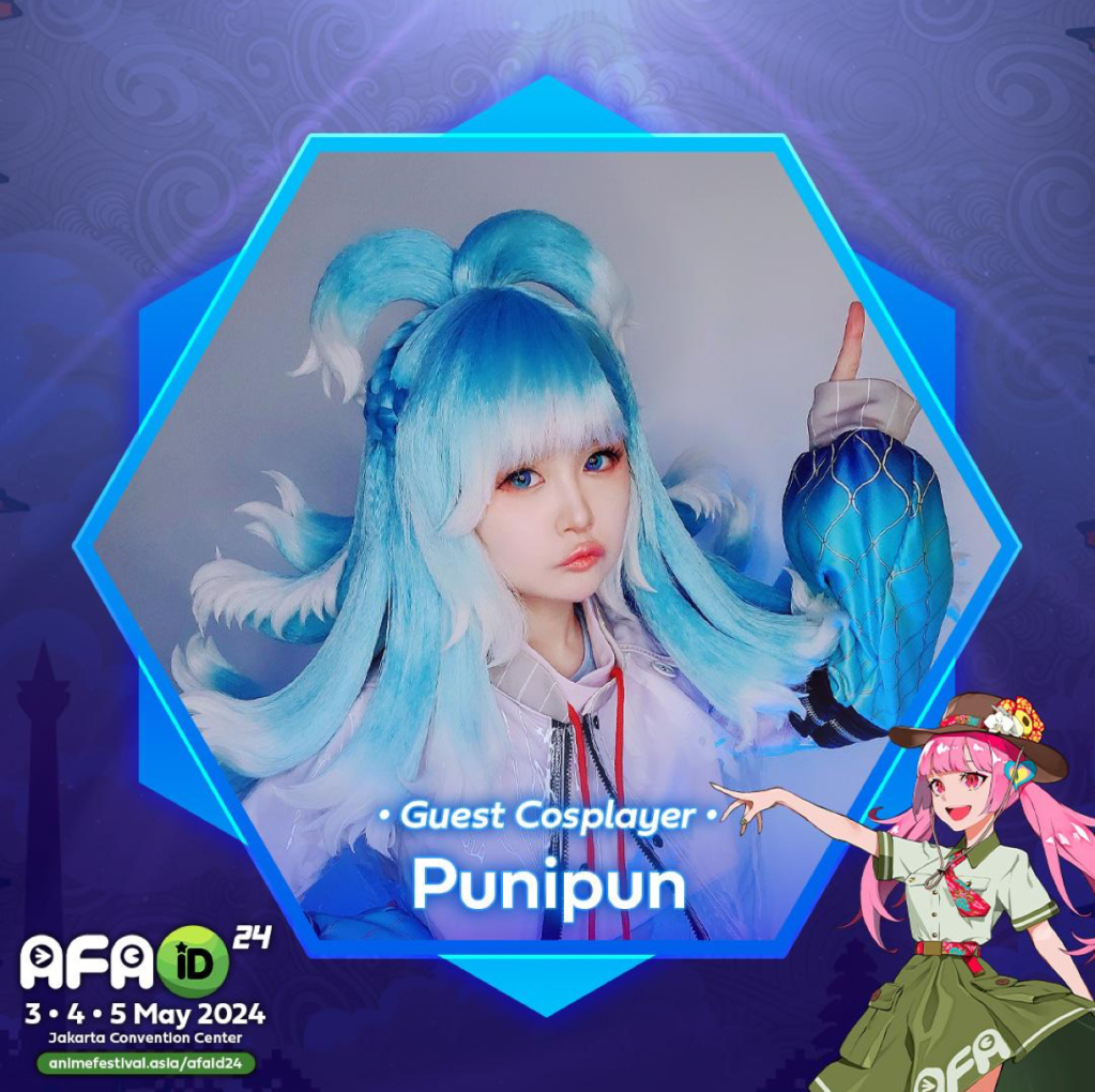 Bergabung bersama AFA ID sebagai Bintang tamu Cosplayer adalah Clarissa Punipun! Clarissa Punipun adalah seorang cosplayer, musisi, dan pembuat konten dari Indonesia yang telah berkostum sejak tahun 2006. Dia memiliki total sekitar 1,85 juta pengikut di media sosialnya, dan telah diundang sebagai Cosplayer Tamu ke lebih dari 100 acara nasional dan internasional.
