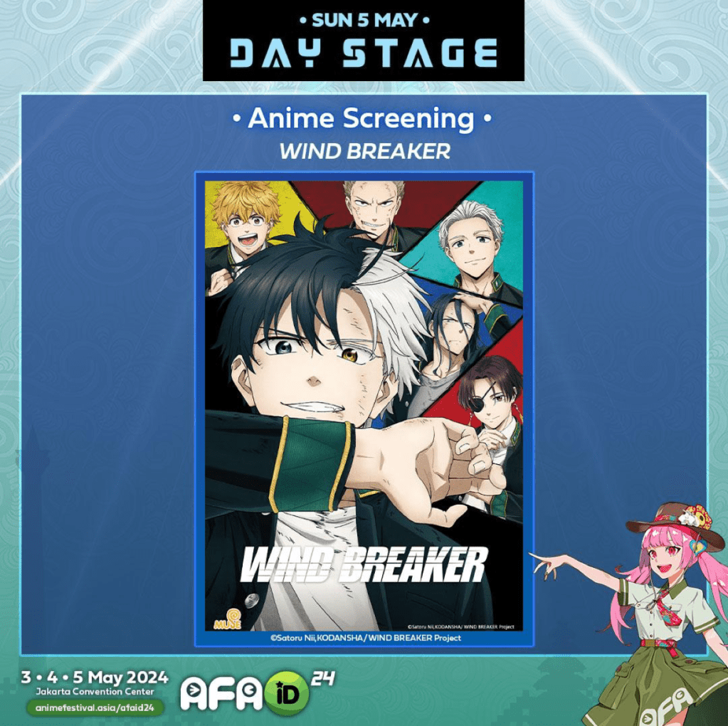 Di acara Day Stage, jangan lewatkan WIND BREAKER! Saksikan pemutaran khusus《WIND BREAKER》! Di mana nilai rata-rata adalah yang terendah, tetapi perkelahiannya adalah yang terkuat, SMA Furin terkenal sebagai sekolah super nakal. Haruka Sakura, seorang siswa tahun pertama, datang dari luar kota untuk bertarung ke puncak. Legenda heroik Sakura sang pelajar yang nakal dimulai di sini!