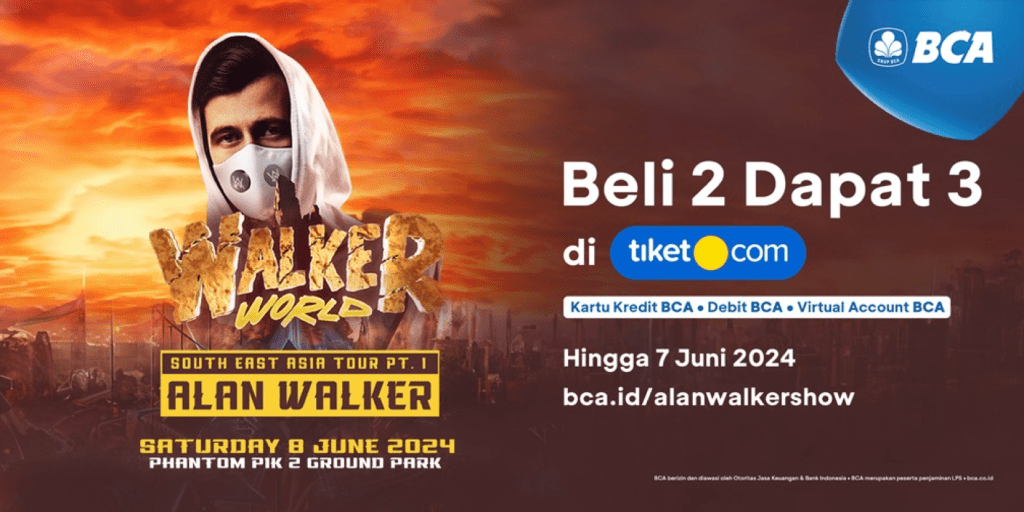 - Beli 2 dapat 3 untuk pembelian tiket konser Alan Walker World 2024 untuk kategori Festival dan Golden Festival