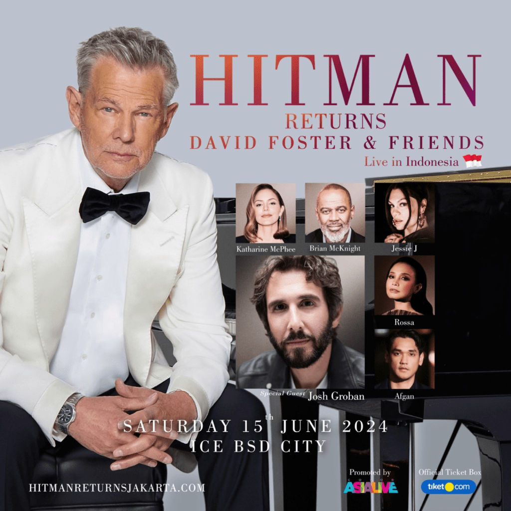 HITMAN RETURNS: DAVID FOSTER & FRIENDS LIVE IN INDONESIA 2024 dibawah arahan produser dan musisi peraih 16 Grammy Awards, David Foster, kali ini akan menghadirkan Brian McKnight, Jessie J, Katharine McPhee, dengan Special guest Josh Groban dan musisi tanah air menghadirkan Rossa dan Afgan.