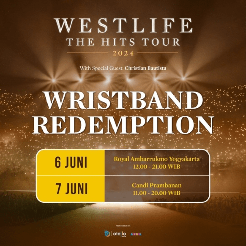 Sysan Ibrahim CEO Otello Asia mengatakan “Kami dengan senang hati menginformasikan bahwa layanan penukaran tiket untuk konser Westlife The Hits Tour 2024 dapat ditukarkan mulai hari ini Kamis 6 Juni 2024, kunjungi kami di Pendopo Agung Royal Ambarrukmo, Yogyakarta, dari pukul 12.00 sampai 21.00 WIB untuk menukarkan tiket anda. Pada hari konser, Jumat, 7 Juni 2024, layanan akan tersedia di Candi Prambanan dari pukul 11.00 sampai 20.00 WIB. Terima kasih kepada Royal Pendopo Ambarukmo Yogyakarta atas partisipasinya menjadi tempat penukaran tiket Westlife di Yogyakarta yang sangat strategis dan memudahkan Westlifers menukarkan e-ticket dengan wristband untuk menyaksikan konser Westlife The Hits Tour 2024 besok malam”.