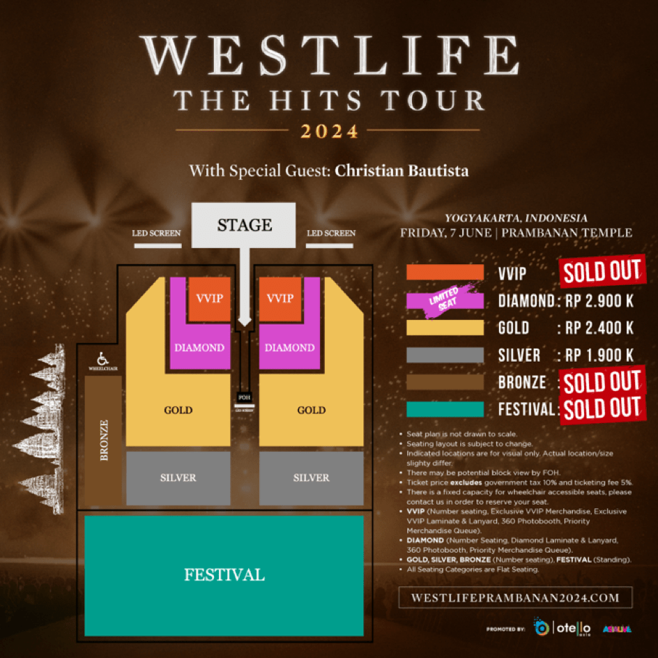 Situs Resmi tiket : http://www.WestlifePrambanan2024.com