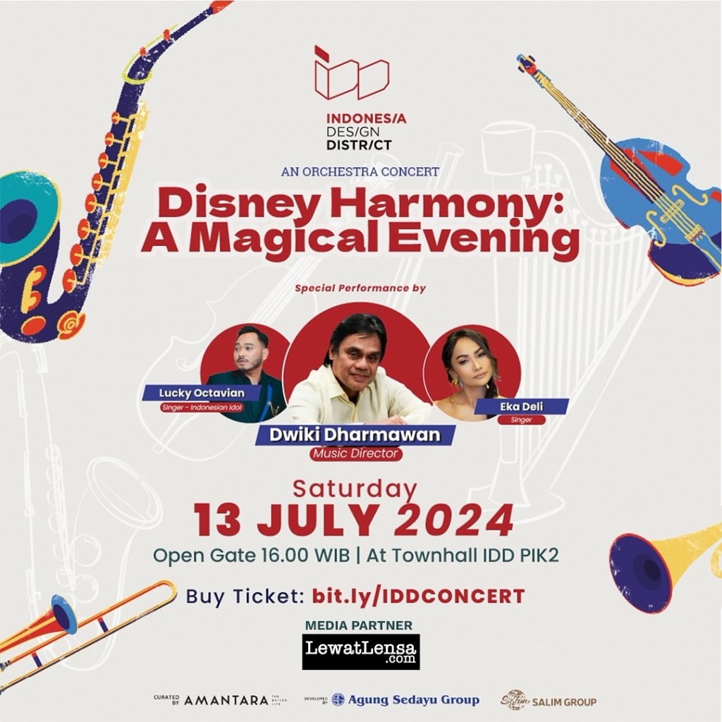 LewatLensa.com – Indonesia Design District dengan gembira mengumumkan konser orkestra istimewa yang akan membawakan lagu-lagu Disney favorit, tepat di masa liburan sekolah tahun ini. Konser ini akan diselenggarakan pada tanggal 13 Juli 2024 di Townhall Indonesia Design District.
