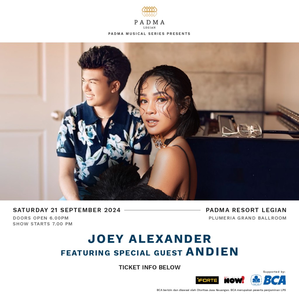 LewatLensa.com – Padma Resort Legian dengan bangga mengumumkan konser Padma Musical Series mendatang yang akan digelar pada hari Sabtu, 21 September 2024. Konser kali ini akan menampilkan musisi jazz kelas dunia, Joey Alexander, bersama penyanyi wanita ternama Indonesia yaitu, Andien.