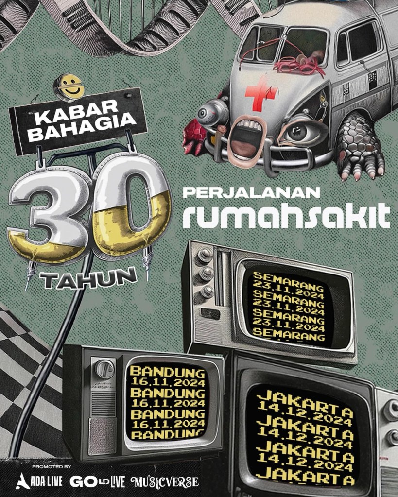 LewatLensa.com – Band legendaris rumahsakit, yang telah berdiri dan berkarya selama 30 tahun, akan segera menggelar rangkaian tur spesial bertajuk merayakan “Kabar Bahagia: 30th Perjalanan rumahsakit”. Tur ini merupakan perayaan tiga dekade perjalanan band yang telah menghasilkan banyak karya ikonik di kancah musik Indonesia. Selama tiga dekade, rumahsakit telah berhasil menciptakan komunitas penggemar setia, yang dikenal dengan nama “Pasien.” Tur spesial ini menjadi ajang bagi rumahsakit untuk berbagi kebahagiaan dengan para penggemar yang telah setia menemani perjalanan mereka dari awal hingga saat ini.