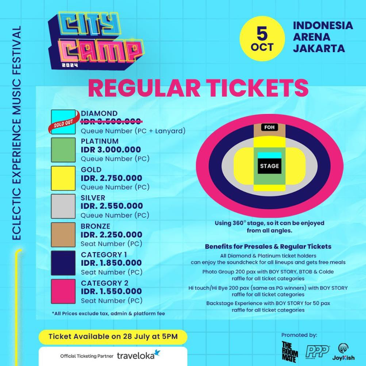 Tiket City Camp 2024 masih tersedia dalam beberapa kategori, sebagai berikut: