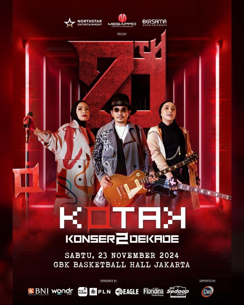 LewatLensa.com – Grup band rock Kotak tengah bersiap menggelar konser memorable bertajuk “Konser Dua Dekade Kotak”, yang menandai rangkaian perjalanan 20 tahun mereka di kancah musik Indonesia. Konser yang akan diadakan di GBK Basketball Hall, Senayan, Jakarta, pada Sabtu, 23 November mendatang, ini akan menjadi momen istimewa bagi para personel Kotak: Tantri (vokal), Cella (gitar), dan Chua (bass).