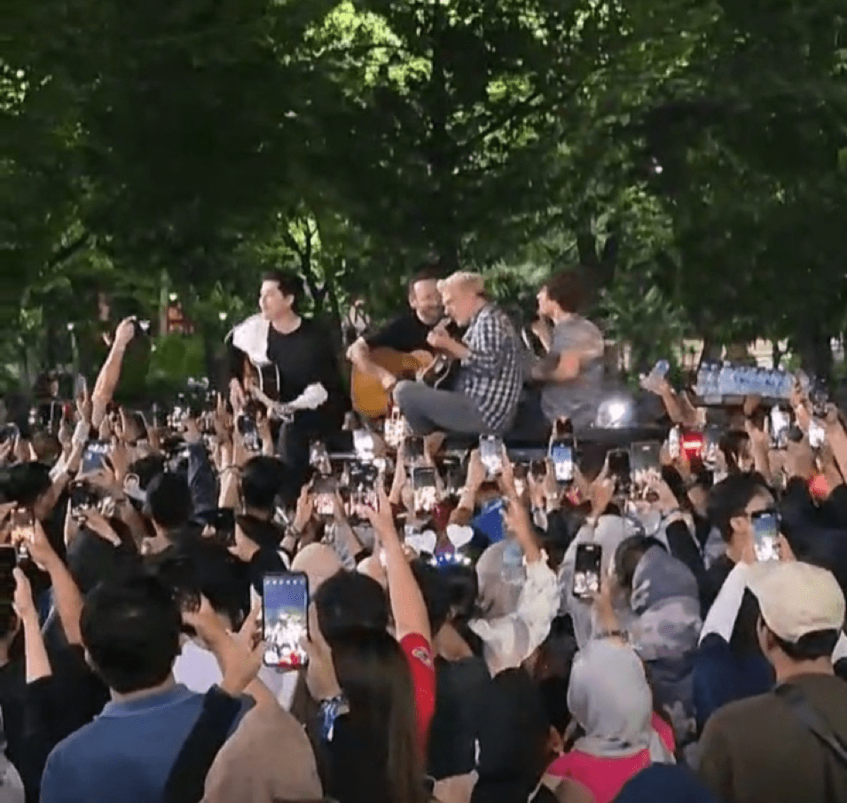 Usai menyelesaikan lagu pamungkas “Hall of Fame,” tidak langsung meninggalkan lokasi, The Script justru memberikan kejutan bagi fans yang baru saja keluar dari Jatim Expo. Para personel muncul di area parkir keluar dan menaiki bagian atas sebuah mobil, lalu membawakan lagu-lagu hits mereka secara spontan. Aksi ini sontak menarik kembali perhatian penggemar yang berhamburan untuk merekam momen langka tersebut.
