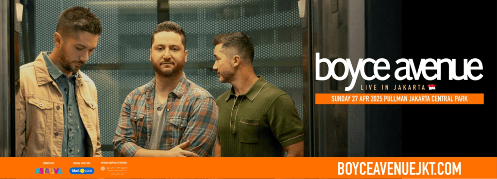 LewatLensa.com – Color Asia Live hari ini resmi memngumumkan akan membawa Boyce Avenue ke Jakarta, grup band internasional asal Florida yang dikenal dengan musik akustiknya yang khas, akhirnya kembali menyapa para penggemarnya di Indonesia lewat konser bertajuk “Boyce Avenue Live in Jakarta”. Acara ini akan diselenggarakan pada hari Minggu, 27 April 2025, bertempat di Hotel Pullman Jakarta Central Park. Untuk informasi lebih lanjut kunjungi www.boyceavenuejkt.com