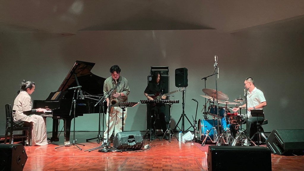 LewatLensa.com – Kuartet jazz LOVE IS kembali ke panggung GoetheHaus Jakarta dengan format terbarunya dalam edisi kedua konser Alur Bunyi tahun ini. Grup musik asal Jakarta yang beranggotakan Jason Mountario (bass), Sri Hanuraga (piano), Kelvin Andreas (drum), dan Rainer James (saksofon), tampil pada Selasa malam, 15 April 2025, mengajak penonton menyelami delapan komposisi layaknya sebuah cerita bernarasi-mengarungi beragam konsep dan emosi.
