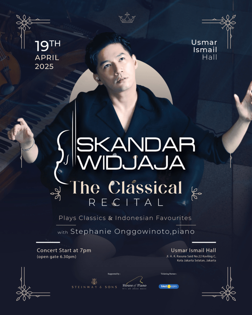LewatLensa.com – Iskandar Widjaja sudah berada di Jakarta “Senang kembali ke Jakarta!” ungkapnya. Hari ini, Sabtu, 19 April 2025, violinist internasional kebanggaan Indonesia, Iskandar Widjaja, akan mempersembahkan konser tunggal bertajuk “The Classical Recital – Plays Classics & Indonesian Favourites” yang akan digelar di Usmar Ismail Hall, Jakarta. Ia akan tampil bersama pianis kenamaan Stephanie Onggowinoto. Tiket konser dapat diperoleh melalui tiket.com, dengan kategori Silver telah terjual habis, dan jumlah tiket lainnya masih tersedia sangat terbatas.