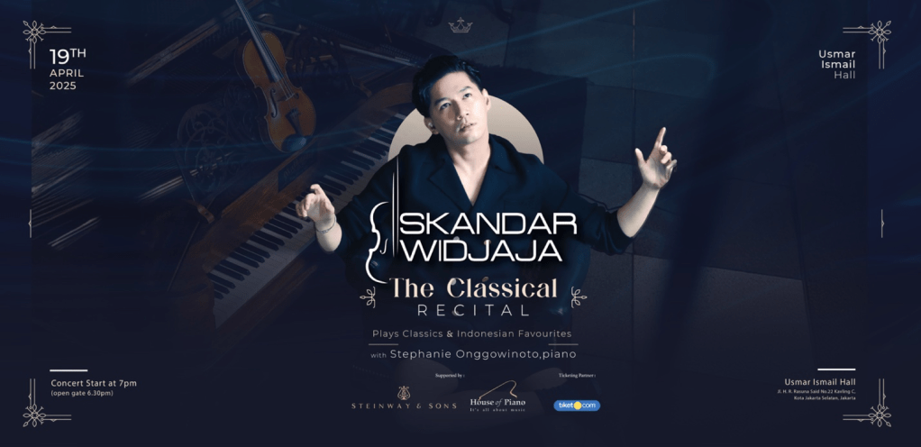 Mengusung konsep resital klasik bergaya Eropa yang intim, konser ini memadukan mahakarya klasik dunia dengan sentuhan khas Indonesia. Penonton akan diajak dalam perjalanan musikal yang penuh emosi dan kedekatan, menghadirkan pengalaman konser yang hangat dan mengesankan.