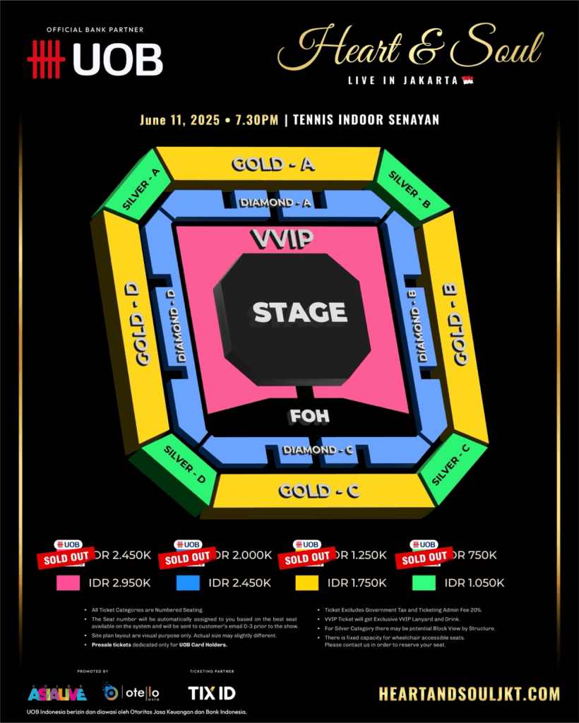 Harga tiket Heart & Soul Live in Jakarta 2025 dapat dibeli melalui heartandsouljkt.com.