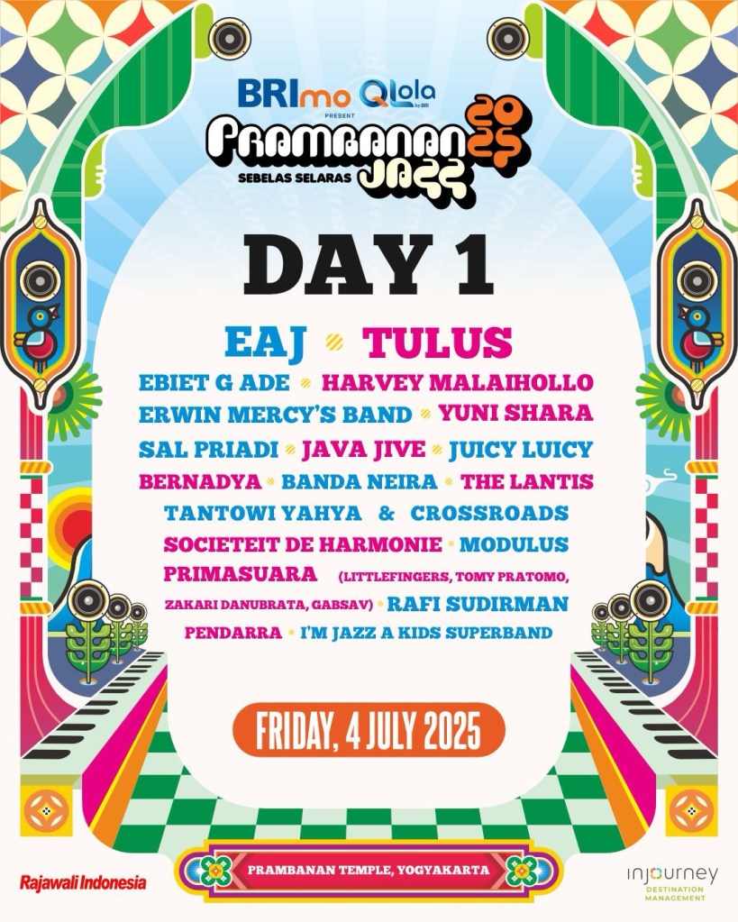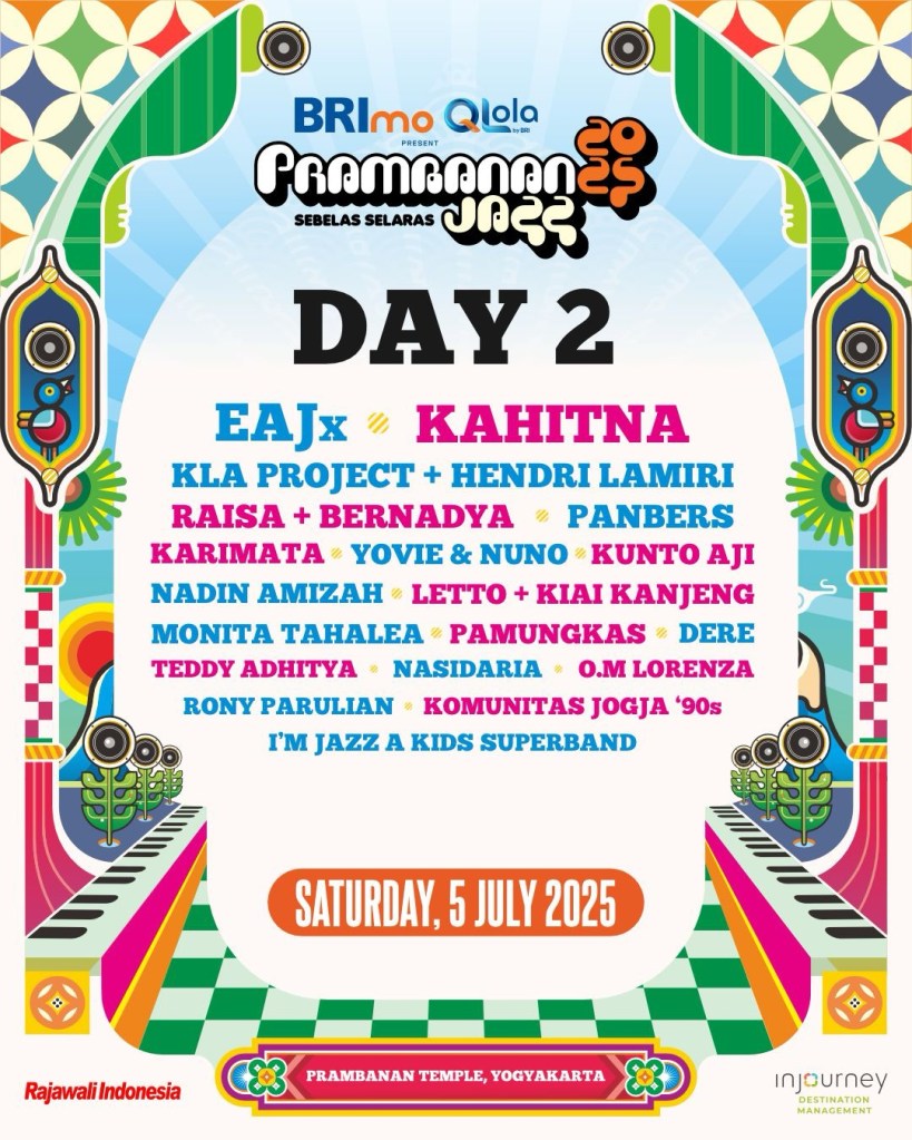 LewatLensa.com – Memasuki tahun ke-11, Prambanan Jazz Festival kembali digelar pada 4-6 Juli 2025 di situs bersejarah Candi Prambanan. Mengusung tema “Sebelas Selaras”, festival ini merayakan harmoni antara musik, alam, dan budaya.