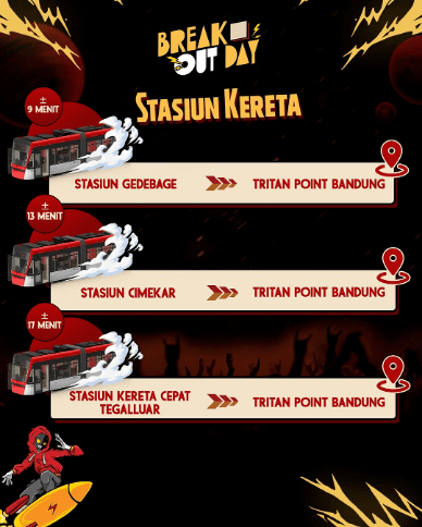 Beragam opsi akses transportasi telah kami siapkan, selengkapnya dapat Anda lihat pada poster informasi serta media sosial resmi Super MusicBreak Out Day 2025.