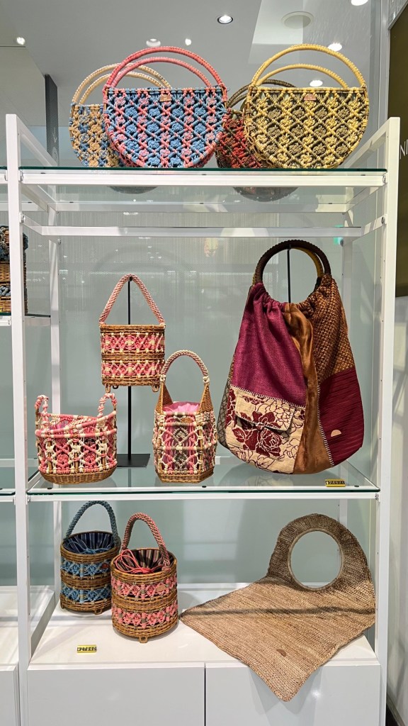 Setiap tas dalam koleksi ini sepenuhnya dikerjakan secara handmade oleh pengrajin Indonesia, memadukan rotan alami, tekstil upholstery yang sustainable, dan teknik tenun tradisional Tas-tas ini tersedia dalam kisaran harga antara ¥18,000 hingga ¥38,000.