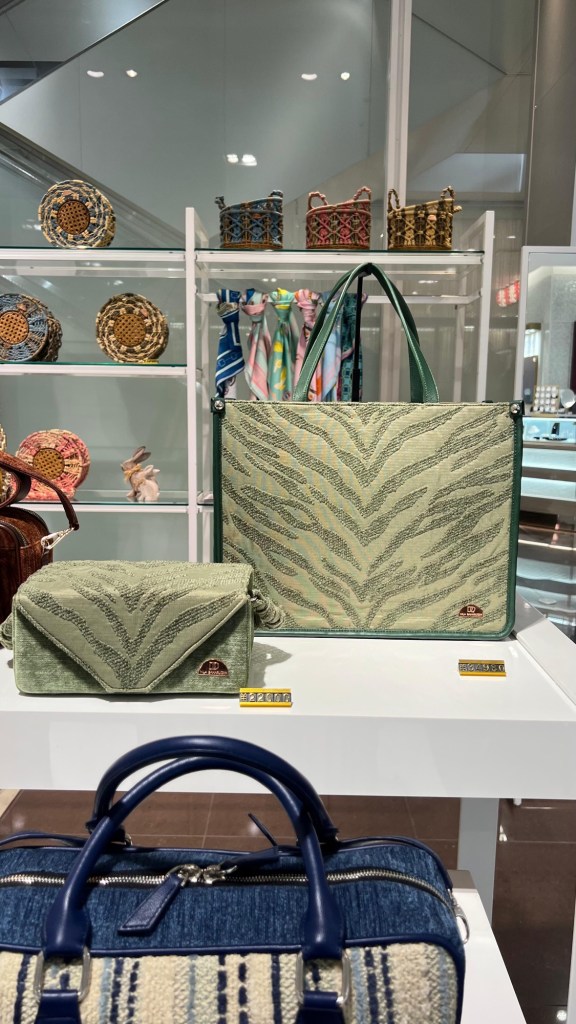 Tas-tas dari tekstil furnitur hasil upcycle juga menjadi bagian penting dari koleksi ini. Tekstil furnitur yang terlupakan kini dihidupkan kembali menjadi tas-tas elegan yang unik dan penuh karakter. Motif seperti bunga vintage dan garis-garis klasik menambah sentuhan nostalgia sekaligus modern pada setiap desain, menjadikannya one-of-a-kind piece.