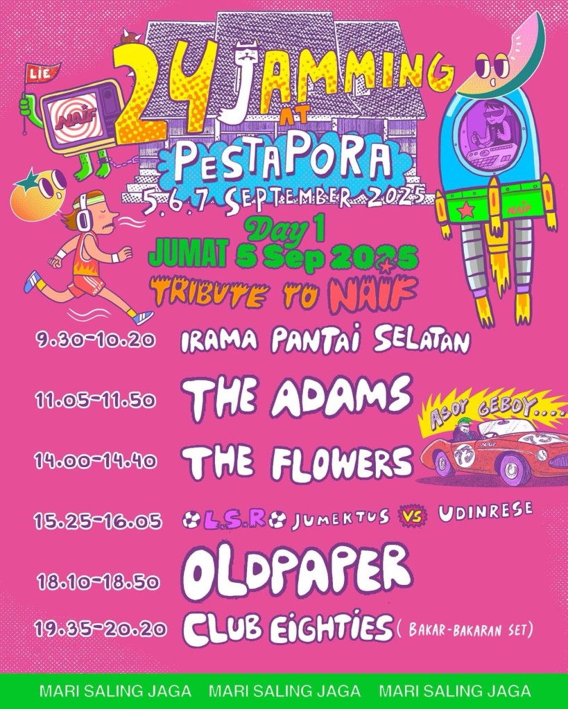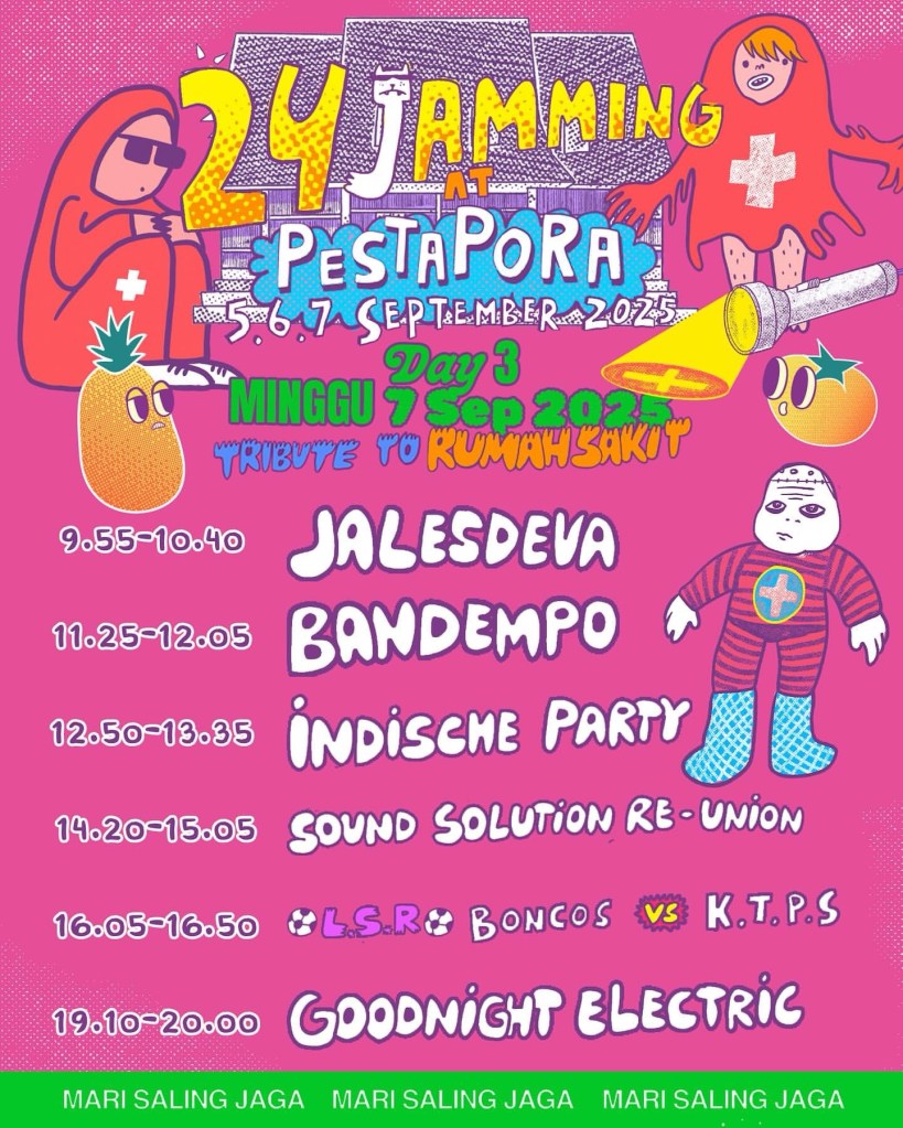 LewatLensa.com – Setelah sukses memeriahkan Pestapora 2024 dengan replika Plasa Luwes dan nuansa nostalgia yang kuat, tahun ini 24 Jamming kembali hadir untuk kedua kalinya di Pestapora 2025. Panggung legendaris Institut Kesenian Jakarta (IKJ) ini akan turut hadir kembali sebagai ruang hidup bagi musik, kreativitas, dan ekspresi di festival yang akan berlangsung pada 5, 6, dan 7 September 2025 di JiExpo Kemayoran. Panggung ini akan menghadirkan total 16 penampil musik lintas generasi dengan konsep istimewa: setiap hari didedikasikan sebagai tribute untuk band-band legendaris asal IKJ.
