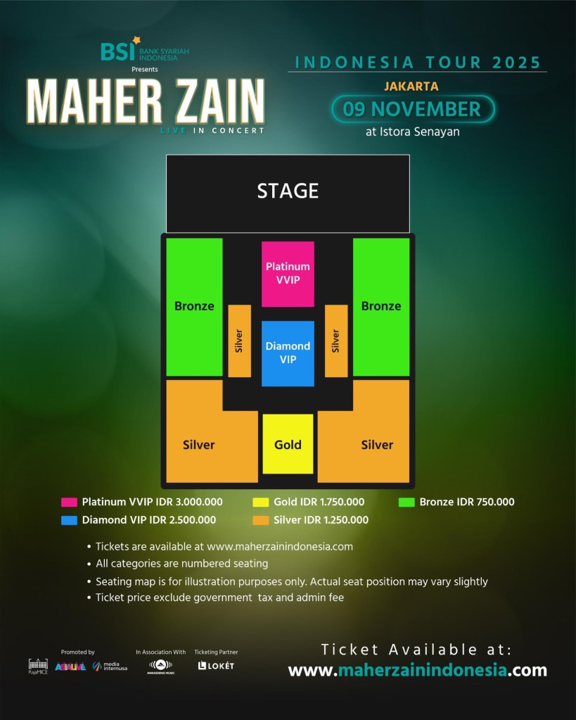 Sementara itu, Director Media Internusa, Eliana Noor, menekankan bahwa konser kali ini akan berbeda dari sebelumnya. “Maher Zain akan tampil dengan full band, bukan minus one. Jadi penampilan kali ini dijamin lebih grande, lebih hidup, dan penuh kejutan. Kami ingin memberikan pengalaman konser yang tak terlupakan bagi seluruh penggemar.”
