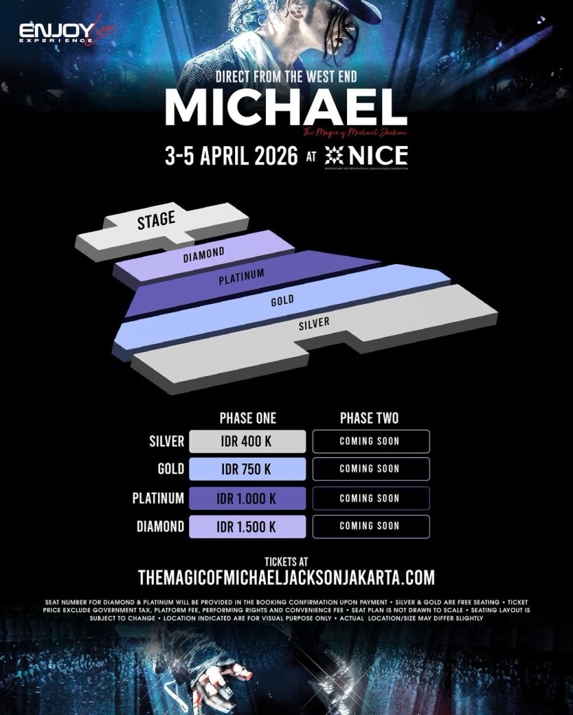 Untuk jadwal, denah kursi, FAQ, dan pembelian tiket, kunjungi themagicofmichaeljacksonjakarta.com.