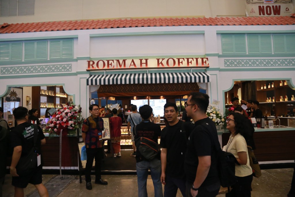 Mengusung konsep booth bertema pelaminan Minangkabau, Roemah Koffie menciptakan pengalaman imersif di Hall 3A ICE BSD — menjadikannya “Lebarannya anak kopi” di Jakarta Coffee Week 2025.