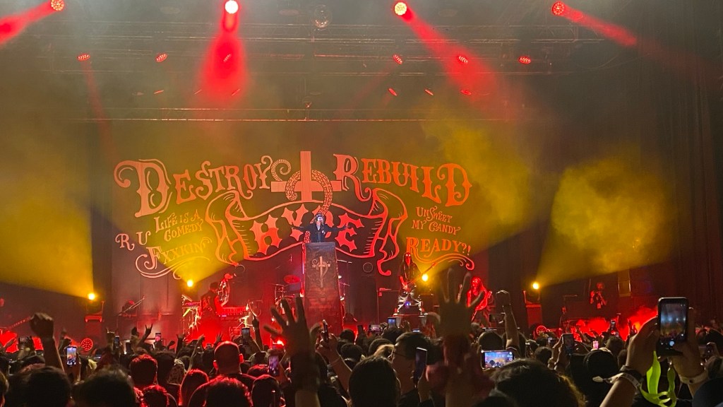 Konser dibuka dengan “Inside Head”, sebuah prolog atmosferik yang membangun suasana sebelum HYDE menghentak panggung lewat “Let It Out”, disusul deretan lagu andalan seperti “After Light,” “Defeat,” hingga “Mad Qualia.”Didukung tata cahaya dinamis, visual futuristik, dan tata suara berlapis yang presisi, HYDE memanjakan penonton dengan performa yang tak hanya musikal, tetapi juga teatrikal.