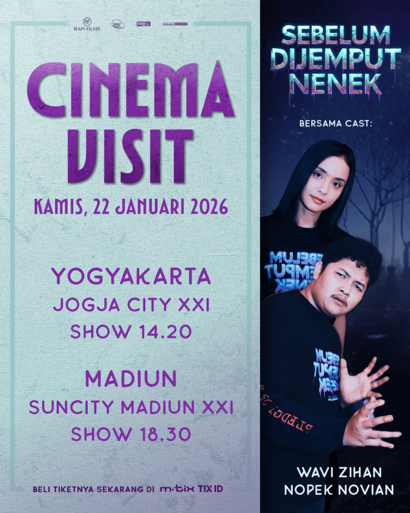 “Kami ingin Sebelum Dijemput Nenek tidak hanya dinikmati di layar, tetapi juga dirayakan bersama penonton. Di hari pertama penayangan, kami menyapa langsung penonton lewat cinema visit di Yogyakarta dan Madiun, lalu dilanjutkan ke Malang dan Surabaya pada 23 Januari. Ini menjadi cara kami berbagi energi, tawa, dan pengalaman menonton yang hangat bersama penonton di berbagai kota,” ujar Sunil Samtani.