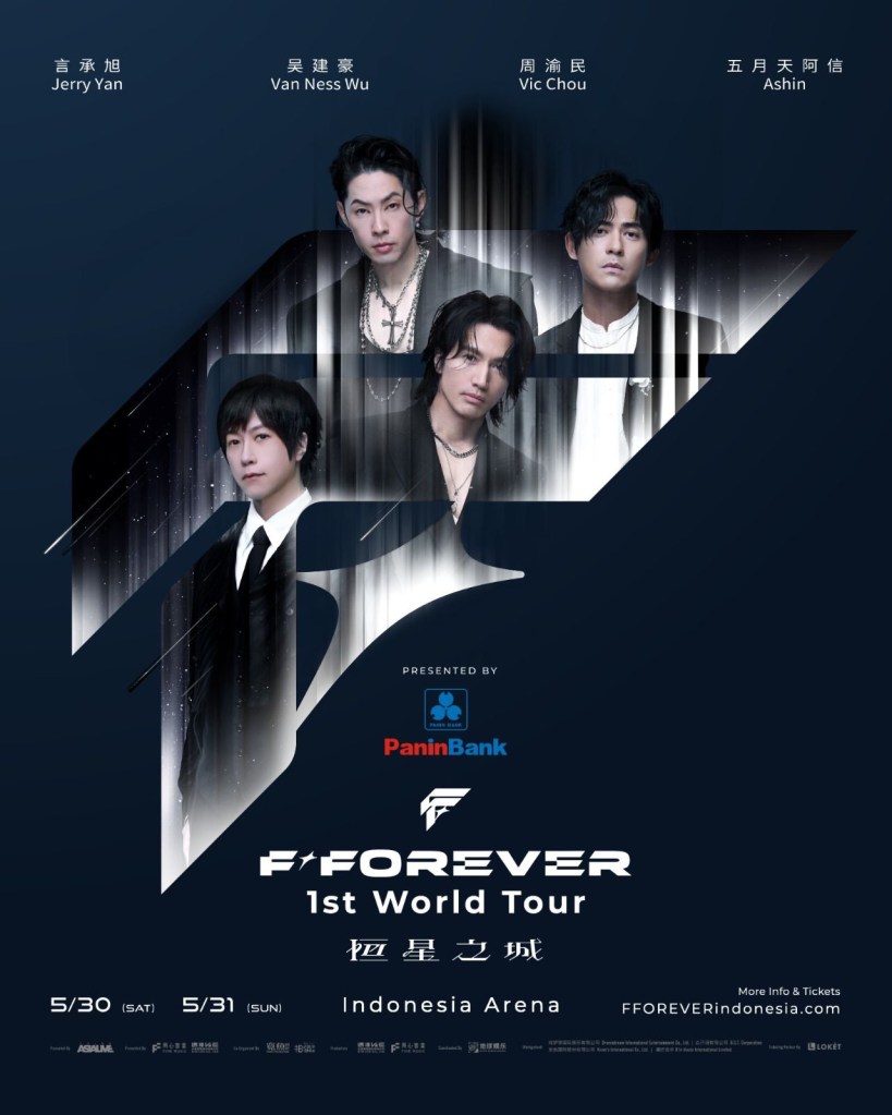 F✦FOREVER adalah sebuah proyek limited yang menyatukan tiga anggota fenomena ikonik Asia, F4 — Jerry Yan, Van Ness Wu dan Vic Chou — bersama Ashin, vokalis utama dari band “King of Concerts,” Mayday. Sejak diluncurkan tahun lalu, tur ini telah menyelesaikan 19 pertunjukan di berbagai kota termasuk Shanghai, Chengdu, Shenzhen, Wuhan dan Chongqing, serta mendapat ulasan luar biasa dan permintaan penggemar yang besar untuk konser tambahan. F✦FOREVER pun mendengar suara para fans dan mengumumkan secara resmi bahwa pada tanggal 30 dan 31 Mei 2026, F✦FOREVER akan tampil di Indonesia Arena, GBK Senayan, Jakarta, dan menghabiskan waktu bersama para fans yang telah lama menantikan mereka untuk sekali lagi menciptakan momen bahagia.