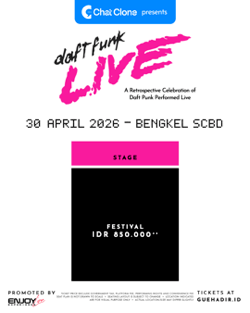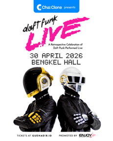 LewatLensa.com – Chatclone dengan bangga mempersembahkan Daft Funk Live “A Retrospective Celebration of Daft Punk Performed Live”, sebuah pertunjukan spektakuler yang menyuguhkan pengalaman tribute terbaik untuk duo elektronik legendaris dunia, Daft Punk. Acara ini dipromotori oleh Enjoy Live Experience dan dirancang untuk menghadirkan nuansa musikal khas Daft Punk secara imersif. Pertunjukan akan digelar pada Rabu, 30 April 2026 di Bengkel Hall, SCBD, Jakarta, dan siap membawa penonton dalam perjalanan musikal penuh energi melalui karya-karya ikonik, mulai dari era Homework hingga Random Access Memories.