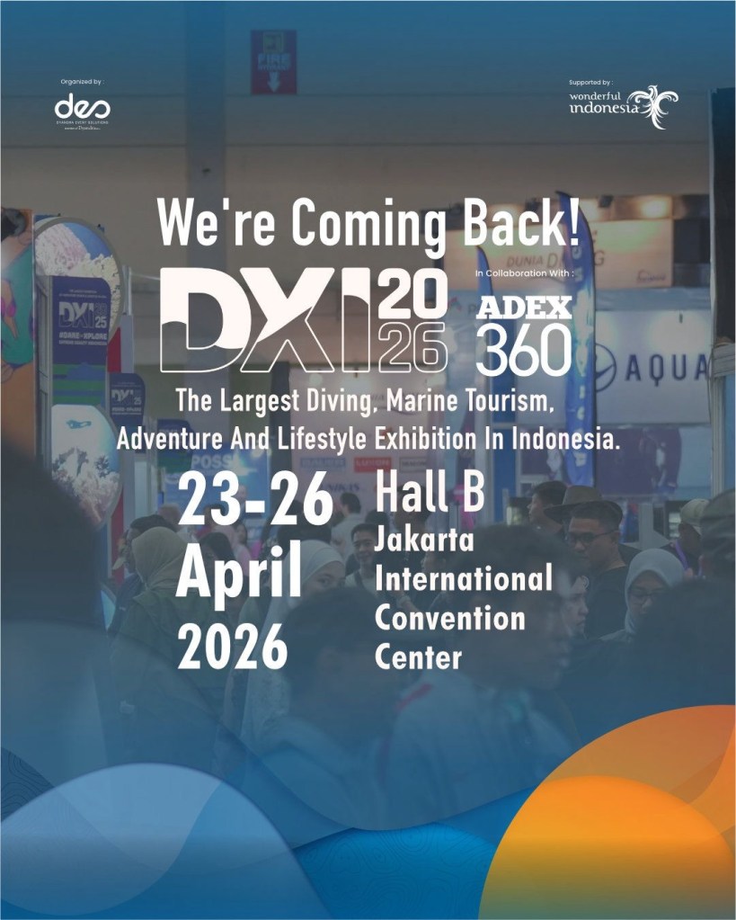 Untuk itu, pameran Diving, Wisata Bahari, Petualangan, dan Gaya Hidup Terbesar di Indonesia, Deep and Extreme Indonesia (DXI) 2026, akan kembali hadir dengan konsep yang lebih besar dan kolaboratif. Diselenggarakan oleh Dyandra Event Solutions, DXI 2026 akan berlangsung pada 23–26 April 2026 di Hall B Jakarta International Convention Center (JICC), Jakarta.